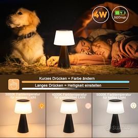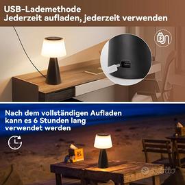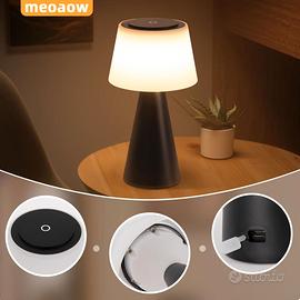 Meoaow Lampada da tavolo a batteria, luce notturna a LED, lampada da tavolo senza fili da 3600 mAh, lampada touch dimmerabile tramite USB, lampada tavolo ricaricabile con batteria. Lampada di colore nero per soggiorno, scrivania, comodino.
