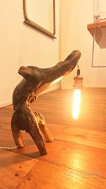 Lampada da tavolo o abat jour in legno artigianale. Pezzo unico di artigianato, realizzato con parte di tronco levigato naturalmente dal mare. Ripulito e trattato con vernice trasparente di qualità.
