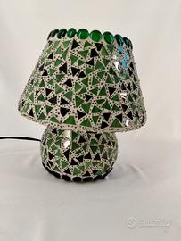 lampada da tavolo dalla forma a fungo realizzata in vetro rivestita da tessere di mosaico. H 25 cm.