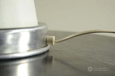 Futuristica Lampada in stile "Nason" di probabile produzione MAZZEGA in stile Space Age, Realizzata negli anni '70 in Vetro Opalino e Acciaio Cromato dalla forma di un Birillo. Perfettamente funzionante e in Ottimo Stato. H. 44cm - Diam. 20cm