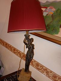 lampada da tavolo con base in marmo,statua in peltro e cappello in stoffa ritiro a mano altezza 87cm