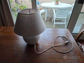 Lampada da tavolo dal design semplice, con paralume in tessuto color tortora e base chiara arrotondata. Ideale per soggiorno, camera da letto o studio. Dotata di cavo con interruttore. Ottime condizioni, perfettamente funzionante.