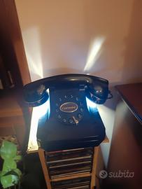 Lampada da tavolo artigianale. Interamente fatta a mano, con le sue imperfezioni, con struttura vecchio telefono. Due faretti led nella cornetta interruttore tattile.