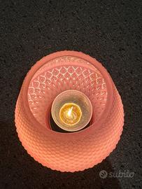 Graziosa e femminile, la lampada da tavolo rosa cipria Dalla lavorazione a rombi, è una lampada in vetro moderna e glam chic, pertetta per ambienti sofisticati o per la camera da letto. La lampada colorata è artigianale, trutto della bravura dei Maestri Artigiani