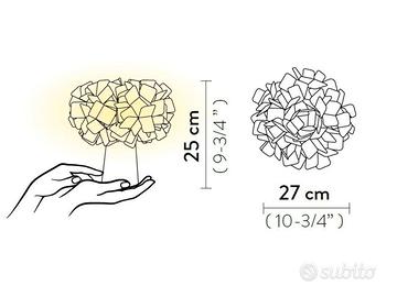 Clizia lampada da tavolo nella finitura bianca. USATE PER NOLEGGIO DISPO. 13 Pz Grazie all'attacco magnetico del diffusore, il decoro si stacca dalla fonte luminosa con un semplice click per facilitare la pulizia e il cambio lampadina. Base alluminio verniciato bianco. Tutte le versioni Clizia sono allestite a mano dalle Sarte della Luce di Slamp incastrando i vari petali fino a creare un volume rigoroso. Dimensioni: diametro 27cm x h. 25cm Sorgente luminosa: 1 portalampade E14 per lampadina. PREZZO AL PUBBLICO DA € 225,00 - RITIRO PRESSO IL NOSTRO SHOW ROOM - DISPONIBILE A SPEDIZIONE a carico dell'acquirente (costo variabile in base alla distanza)