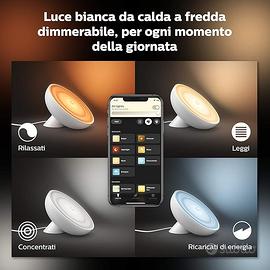 Seleziona la ricetta di illuminazione per ogni momento della giornata o dell'attività; puoi scegliere tra Energia, Concentrazione, Relax e Lettura e a diverse atmosfere colorate