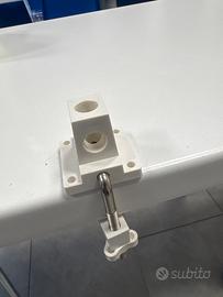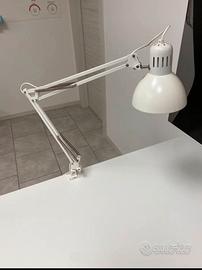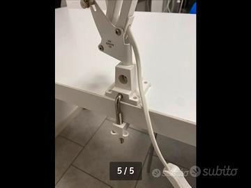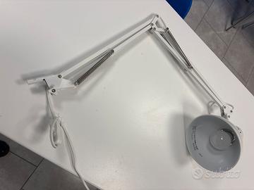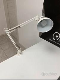 Vendo portalampada in metallo bianco snodabile con aggancio regolabile. Lunghezza totale 100cm circa, altezza allo snodo pieghevole cm 50 circa , lunghezza braccetto cm 50 circa. Prezzo € 5,00 Disponibili 10 pz . Costo lampade e spedizione per blocco da calcolare.