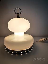 Condizioni: La lampada è in ottime condizioni vintage, con lievi segni del tempo coerenti con l'età. La cromatura è ben conservata e il vetro è intatto con una piccola macchia visibile nelle foto.