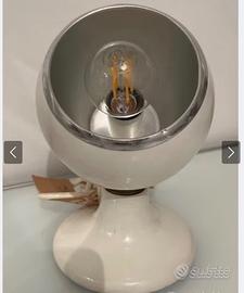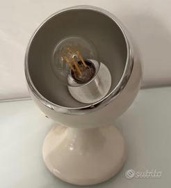 Lampada da tavolo, LUCI, mod. C 414, Milano. Materiale metallo color bianco. Grazie alla calamita posizionata sulla base può essere orientata a piacere. Misure h cm 19, base diametro cm 12, diffusore diametro cm 19. Funzionante, in buone condizioni, piccoli segni di usura che rendono maggiormente accattivante l’oggetto. Anni ‘70, Space Age