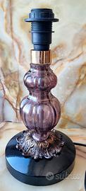 Una lussuosa lampada da tavolo vintage di design in un raffinato stile boudoir con vetro sagomato su base in metallo.Questo pezzo definisce l'atmosfera e conferisce stile a tutto l'interno,crea un'atmosfera di comfort,privacy e lusso discreto,proprio come in un boudoir d'epoca.Non è solo una fonte di luce,ma un elemento decorativo che aggiunge stile e carattere all'ambiente. La base è realizzata con una combinazione di vetro e metallo.La sezione centrale è un bulbo decorativo in vetro trasparente di un bellissimo colore rubino,composto da due sfere in rilievo,una piccola e una grande,che ricordano una figura femminile.Questa combinazione crea una silhouette interessante che distingue la lampada dalle forme standard e le conferisce un aspetto armonioso, quasi scultoreo.La forma rialzata con le sue sporgenze crea un interessante gioco di luci e profondità visiva,enfatizzando la natura decorativa del pezzo.All'interno del vetro sono presenti piccole bolle d'aria,una caratteristica naturale del vetro artistico,che conferiscono all'oggetto un aspetto vibrante, rivelandosi splendidamente alla luce,aggiungendo profondità al materiale e confermandone l'unicità. La parte inferiore della lampada è in metallo,impreziosita da un elemento decorativo in metallo in stile classico,che le conferisce ulteriori qualità scultoree e da boudoir. Il paralume-nuovo,scuro,con una piacevole superficie texturizzata.Diffonde una luce tenue e delicata,creando un'atmosfera calda,intima e accogliente.Ideale per: camere da letto,boudoir,soggiorni o zone relax dove si desidera un'illuminazione serale intima e accogliente. Condizioni:lampada è funzionante.Sono presenti piccole scheggiature sulla parte superiore della base in vetro sotto il paralume,che non compromettono l'aspetto dellalampada Paralume:Nuovo,nella confezione originale Materiali:Vetro artistico,metallo Periodo:Italia,circa '60-'80 Stile:Classico / Hollywood Regency 📏 Peso: 634 g,alt-32,diam:met.dase-13,paralume: 15 cm