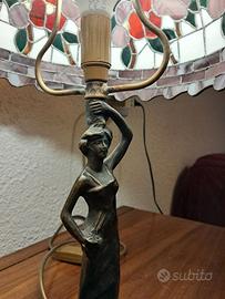 Vendesi lampada da tavolo stile Tiffany, con paralume in vetro e metallo, lievemente pendente da un lato (pendenza lievissima).