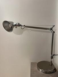 Lampada da tavolo stile Tolomeo color alluminio con braccio mobile e diffusore orientabile. Nuova mai usata