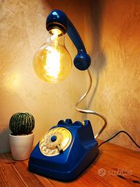 Lampada da tavolo, unica nel suo genere, creata a mano dal recupero creativo di un vecchio telefono SIP anni 70 - blu, trasformato in un originale complemento d'arredo dal fascino antico.