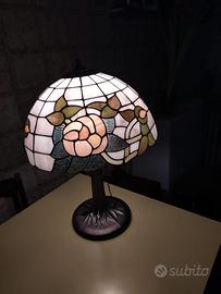 Lampada da tavolo Tiffany con paralume in vetro piombato rilegato Perenz. Base in ottone, altezza 60 cm, in ottime condizioni. Ritiro a mano.