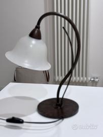 Vendo lampada da tavolo con stelo in color bronzo e paralume a campana in vetro satinato, struttura in ferro. Non disponibile alla spedizione.