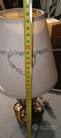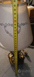affascinante lampada da tavolo in stile classico/shabby chic, perfetta come luce d'atmosfera per camera da letto o zona living. Un pezzo dal sapore retrò che aggiunge un tocco di calore a qualsiasi ambiente. Caratteristiche Principali: Base: Struttura lavorata con finitura metallica (effetto argento/oro anticato) con eleganti scanalature a bulbo. Paralume: In tessuto color crema con un delicato ricamo floreale a forma di cuore, ideale per amanti dello stile romantico o provenzale. Dettagli Tecnici: Dotata di cavo color oro coordinato e interruttore integrato. Stato: Oggetto usato ma ben conservato (come da foto).