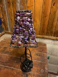 Vendo lampada da tavolo con pietre sui toni del viola e base in ferro. Ritiro a Trieste in zona Piazza Hortis.