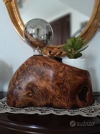 Vendo lampada da tavolo costituita da un pezzo unico di legno di ulivo. Dimensioni 39x22 h20. 70 € più spese di spedizione.
