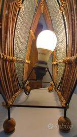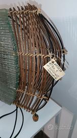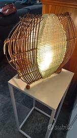 lampada da tavolo in vetro, ferro e midollino. Dimensioni 37x35x10