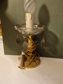 Lampada da tavolo o comodino, vintage, base metallo color oro, dimensioni diametro 10x 17h senza Lampada, 25h con Lampada
