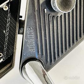 Lampada da tavolo disegnata da Bruno Gecchelin per ARTELUCE, produzione di alta qualità riconoscibile. Le parti metalliche hanno la giusta pesantezza, le funzioni di rotazione del gruppo superiore e del riflettore scorrono senza problemi e rimangono in qualsiasi posizione. Le varie possibilità di regolazione danno luogo a diverse opzioni di illuminazione.
