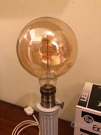 Lampada da tavolo in stile vintage, realizzata artigianalmente, ideale per creare un’illuminazione calda e accogliente. Il design unisce un piedistallo effetto marmo puntinato con portalampada in metallo, per un look semplice ma elegante, adatto a diversi ambienti della casa. Inclusa lampadina LED a filamento con luce calda, già pronta all’uso. ⚙️ Caratteristiche Attacco: E27 Lampadina inclusa: LED a filamento effetto vintage Luce: calda (circa 2200K) Alimentazione: cavo con spina Struttura: base effetto marmo + portalampada in metallo 💡 Utilizzo Perfetta per: comodino salotto scrivania luce d’atmosfera 📦 Condizioni Nuova Realizzata artigianalmente Perfettamente funzionante