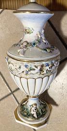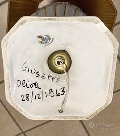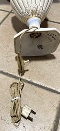 Lampada da tavolo vintage davvero bellissima, originale M.A.S. R. CAPODIMONTE ITALIA. (stampato, non adesivo). Il piedistallo è in perfette condizioni (tranne scheggiatura sotto la base, vedi foro) mentre il paralume è molto ingiallito dal tempo e presenta diverse macchie. Risale al 1963 e la parte elettrica non è in eccellenti condizioni poiché ancora quella dell’epoca.