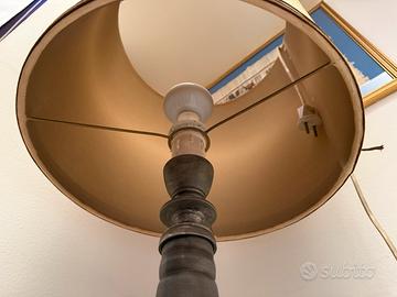 Elegante lampada da tavolo dallo stile classico/vintage, caratterizzata da una solida base in metallo con finitura brunita e paralume cilindrico in tessuto color crema. • Tipologia: lampada da tavolo • Materiale base: metallo (finitura effetto bronzo/brunito) • Paralume: tessuto color crema • Alimentazione: elettrica con attacco standard • Stile: classico/vintage • Condizioni: funzionante, con segni del tempo sul paralume e lievi usure sulla base La forma elegante e proporzionata la rende adatta a diversi ambienti: comodino, soggiorno, studio o ufficio. Il paralume diffonde una luce calda e accogliente. Ideale per chi cerca un complemento d’arredo semplice ma raffinato.