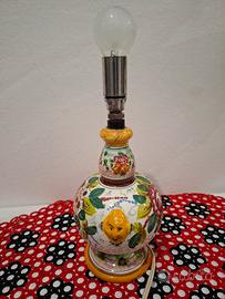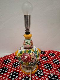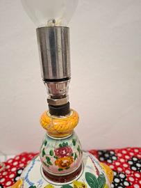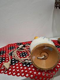 Vendo una lampada da tavolo vintage in ceramica La lampada e artigianale realizzata a mano La base e in ceramica finemente decorato con motivi floreali è volti stilizzati La lampada e funzionante è presenta i segni del tempo visibili nelle foto Misura 32 cm di altezza per 11 cm di larghezza