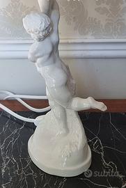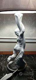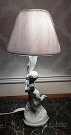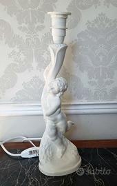 "Cupido di Luce" - Lampada da tavolo vintage in porcellana con putto, stile barocco, anni '50-'70, Italia Una splendida lampada da tavolo vintage in porcellana smaltata bianca. L'immagine del putto (Cupido) - un ragazzo antico - richiama motivi barocchi e neoclassici popolari nell'arredamento d'interni italiano del XX secolo. Le repliche del motivo antico sono molto comuni nelle lampade da interno del dopoguerra. Origine: Italia Periodo: anni '50-'70 Materiale: Porcellana smaltata bianca Stile: Barocco / Neoclassico / Classico Condizioni: La superficie della porcellana presenta delle screpolature della smaltatura: si tratta di un effetto naturale del tempo, non di un difetto o di un danno, ed è normale e comune per la porcellana smaltata vintage della metà del XX secolo. La craquelé non compromette la durata dell'oggetto ed è considerata parte del suo carattere vintage. La gamba sinistra è stata rotta e successivamente incollata. La colla è visibile; il restauro non è professionale e questo difetto può essere corretto se lo si desidera.Le condizioni sono perfettamente rispecchiate nelle fotografie e sono incluse nel prezzo. La base della lampada è dotata di un nuovo paralume nella sua confezione e di un nuovo cavo con interruttore, il cui costo è già incluso nel prezzo. 📏Misure: 540 g Lampada: altezza - 28 cm, lunghezza - 10,5 cm, larghezza - 8,5 cm paralume: altezza - 14 cm, diametro - 18 cm