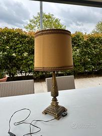 Vendo elegante lampada da tavolo in stile vintage/classico, probabilmente in ottone massiccio, con dettagli decorativi lavorati e base importante. Paralume in tessuto scuro con bordo decorato. Oggetto solido, stabile e perfettamente funzionante, ideale come complemento d’arredo per salotti, studi, camere da letto o ambienti raffinati.