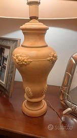 Lampada da tavolo anni '70 con base in terracotta lavorata a mano con disegni floreali in rilievo.Ritiro a mano