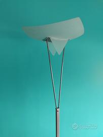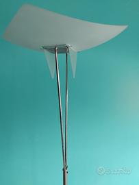 lampada a piantana da terra, piantana in metallo lampada in vetro satinato lampadina alogena inclusa regolatore di intensità luminosa altezza totale da terra cm. 185 base rotonda in metallo diametro cm. 32