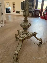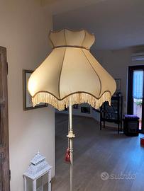 Per chi ama gli oggetti che hanno una storia. La lampada ha una bellissima base in metallo lavorato ( forse ferro); conserva tutta la struttura originale compreso il filo e la spina. Si accende e spegne tirando la cordicella. Il paralume originale ha qualche macchiolina ma per il resto è in ottime condizioni. Di un delicatissimo color panna si adatta a tutti gli ambienti. Altezza circa 170, diametro del paralume cm. 50. Solo ritiro a Nuoro.