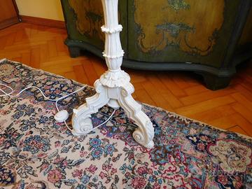 Antica e stupenda lampada da terra in legno massello finemente intagliato a mano.