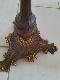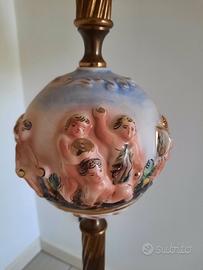 Lampada da terra antica con paralume antica ed elemento in porcellana sull’asta.