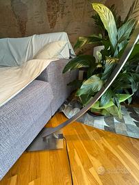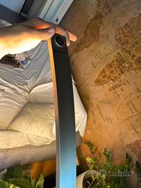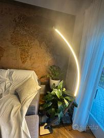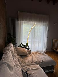 Lampada da terra ad arco color acciaio. Poasibilità di scegliere tre diverse intensità tramite il pulsante touch.