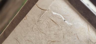 lampada da terra artigianale che combina una struttura in legno naturale con un paralume in carta Attacco lampadina E27 (grande) Dimensioni 120×32×35 Da sostituire la carta rovinata in alcuni punti (vedi foto carta) Per il resto in ottimo stato NON SI SPEDISCE Disponibile solo a Todi (Umbria) Italy