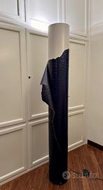 REGALO lampada da terra, pezzo unico, struttura in PVC verniciato, rivestita in vera pelle blu effetto coccodrillo, interno in ferro e plafoniera in alluminio. Con regolatore di luminosità e interruttore. Fornita con sacco protettivo in tessuto. Altezza 195 cm., diametro 25 cm. NON SPEDISCO.