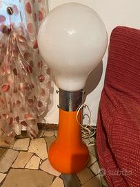 Lampada da terra Birillo di Carlo Nason, metà anni '70. Diffusori in vetro di Murano bianco e arancione, elemento centrale di collegamento in acciaio. Due illuminazioni. Carlo Nason è un famoso artista del vetro italiano, che utilizza tecniche storiche per produrre lampade, vasi e sculture fantasiose. Nato nel 1935 a Murano, in Italia, le sue opere sono presenti nelle collezioni del Corning Museum of Glass e del Museum of Modern Art di New York.