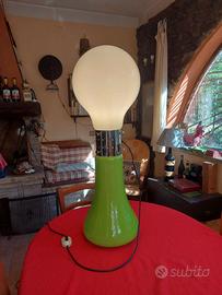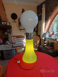 Lampada da terra Birillo disegnata da Carlo Nason per Mazzega negli anni '60. Questa versione dal colore verde vetro inferiore è la più ricercata e la più difficile da trovare. La lampada è composta da 2 vetri soffiati di Murano dalla forma morbida uniti al centro da un cilindro cromato che li sostiene fissando le teste con un sistema di torsione. All'interno 2 lampadine possono essere accese o spente separatamente, accendendo e scegliendo a piacimento una delle tre posizioni. La lampada è in ottime condizioni e perfettamente funzionante.