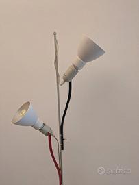 Lampada da terra prodotta da Danese Milano, con struttura in metallo e con sorgenti di posizione regolabile. La lampada si distingue per la struttura minimale ed essenziale, con eleganti elementi nero e rosso. Lampadine incluse. Perfettamente funzionante