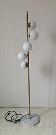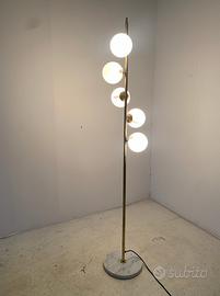 Aggiungi un tocco di eleganza e stile vintage alla tua casa con questa splendida lampada da terra Bubble, un originale design di LUCI, Made in Italy. Questa lampada iconica presenta una struttura in ottone dorato con cinque diffusori sferici in vetro opalino, che creano un’illuminazione soffusa e raffinata. La base in marmo bianco (possibilità di avere anche in nero)aggiunge stabilità e un tocco di lusso, perfetto per ambienti moderni, retrò o mid-century.