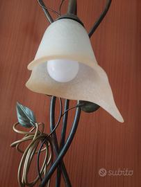 Lampada da terra piantana classica con 3 luci vetri calla decoro foglie LUCI CLASSICHE CALLA AMBRA