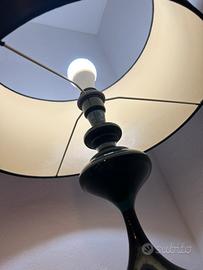 Lampada dat terra con struttura in metallo nero e paralume in tessuto altezza totale 165cm