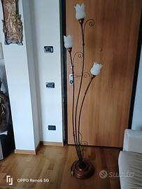Lampada da terra con bocce in vetro di murano, interruttore a pedale, base in legno massello e rami in ottone scuro. Alta 1, 85 base 30cm
