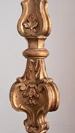 Lampada da terra composta da: candelabro d’altare in legno dorato originale del 1800 – altezza cm 115 paralume in tessuto con disegno moderno altezza totale candelabro + paralume cm 172