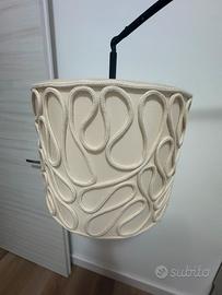 Lampada da terra ad arco (colore nero) di Ikea con paralume in corda (colore beige), sempre di Ikea.