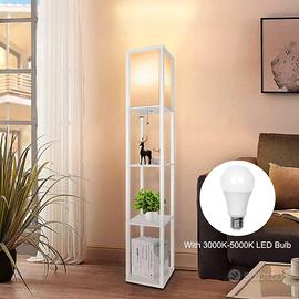 Lampada Salotto da Terra, 3000K-5000K Lampada da Pavimento in Legno con Scaffale, Lampada a Stelo 1.6M, Piantana da Terra con Presa E27 per Camera Da Letto e Soggiorno(Lampadine Incluse)