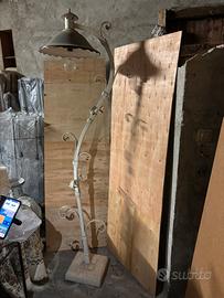 Lampada da terra da in ferro battuto,laccato bianco con base in graniglia.